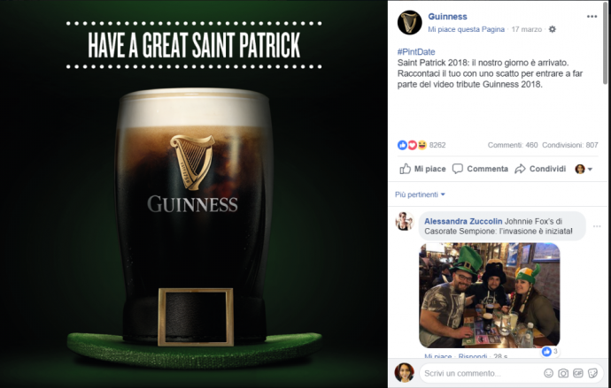 Il post più performante? Ça va sans dire, è quello dedicato alla festa irlandese più nota: il Saint Patrick’s Day. Il boccale di birra trasformato in un cappello raccoglie 9,6K interazioni.