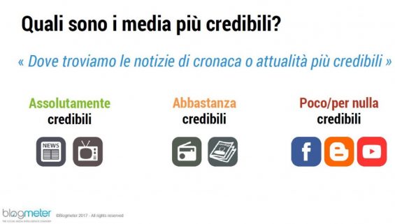 I canali di informazione più accreditati restano tv e stampa, mentre Facebook, YouTube e i Blog vengono considerati poco affidabili.