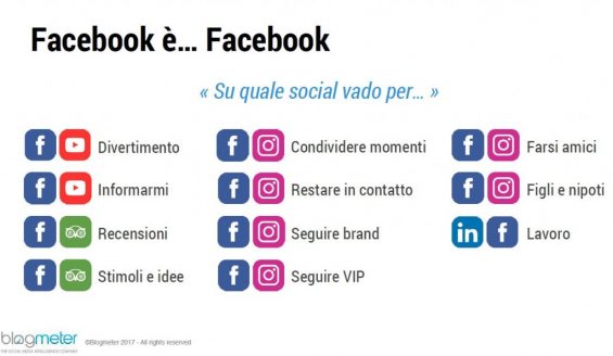 Facebook rappresenta, per gli intervistati, il principale social network per tutti gli obiettivi, seguito da TripAdvisor per leggere recensioni, YouTube per informarsi e Instagram per seguire brand e personaggi celebri