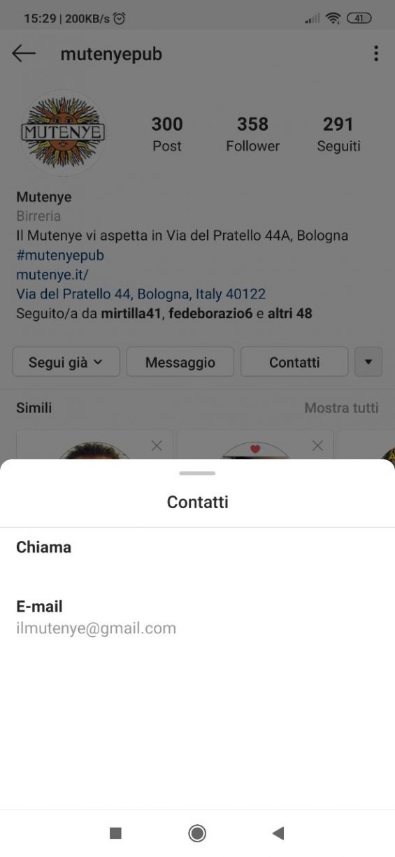 Anche in questo caso si ha accesso alle statistiche del proprio profilo e si può aggiungere al profilo un bottone che permette di essere contattati tramite mail o telefono.